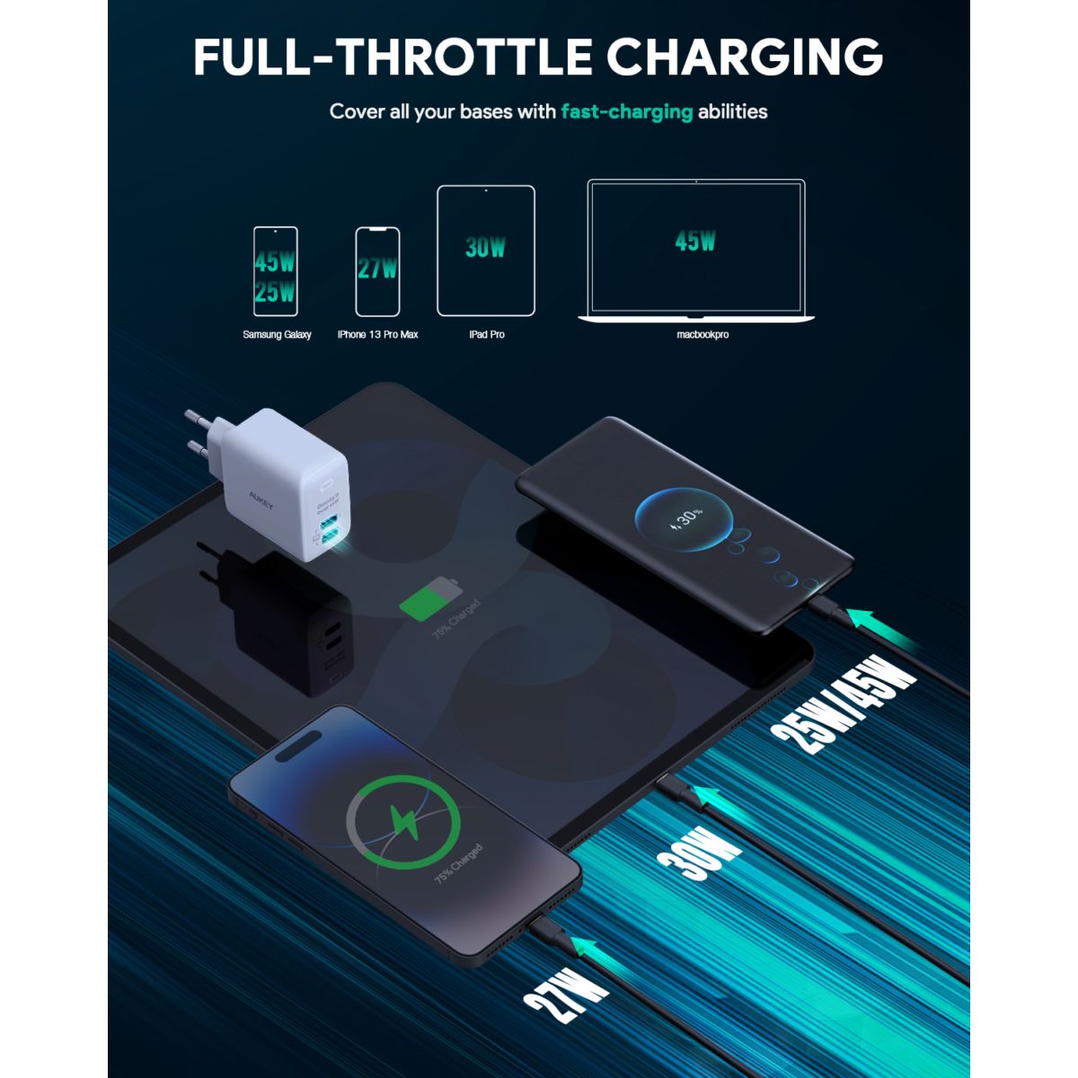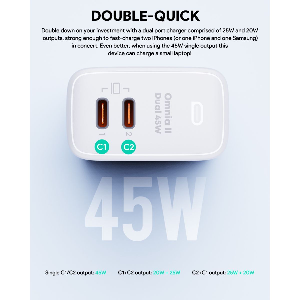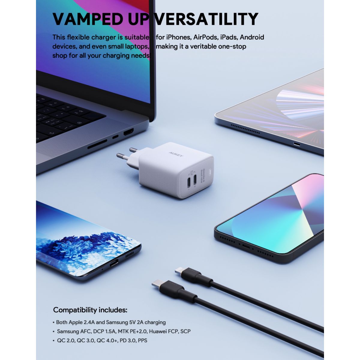 หัวชาร์จเร็ว AUKEY PA-B4T 45W Omnia II Series Dual Ports PA-B4T-White (ขากลม)