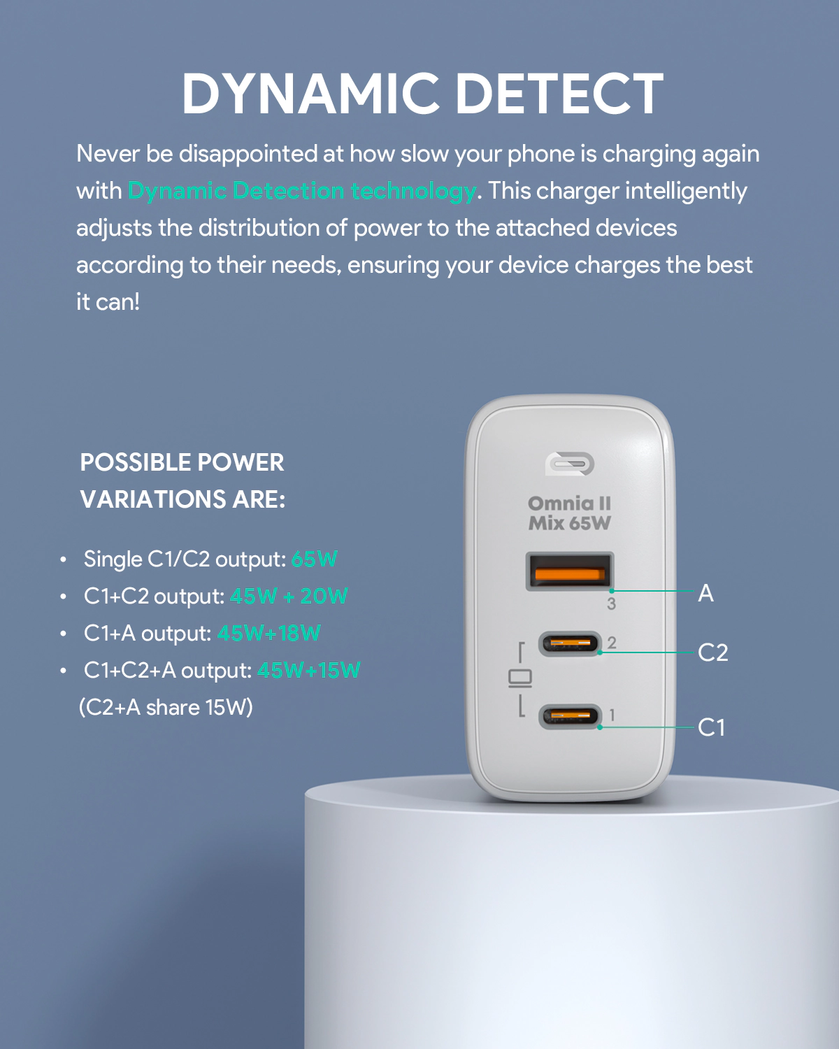 - หากชาร์จเร็ว PD พร้อมกัน 2 ช่อง เทคโนโลยี Dynamic Detect จะช่วยให้ยังชาร์จเร็วแบบ PD ได้อยู่ แต่จะจ่ายไฟสูงสุดที่ 60W และ 30W