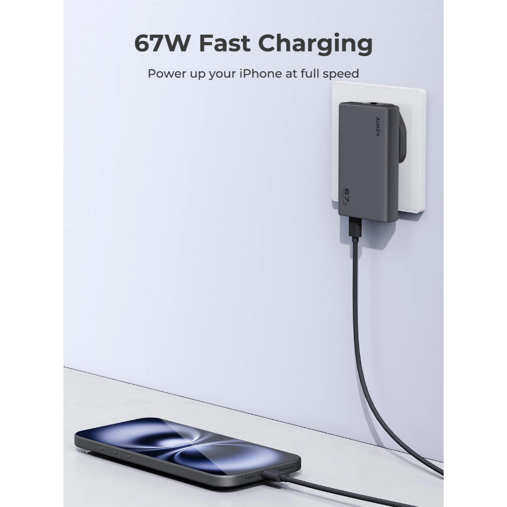 หัวชาร์จ PD ขนาดกะทัดรัด ดีไซน์บางเฉียบ กำลังไฟ 67W พร้อม GaN Technology ที่ช่วยเพิ่มประสิทธิภาพในการแปลงพลังงาน ลดความร้อนขณะใช้งาน