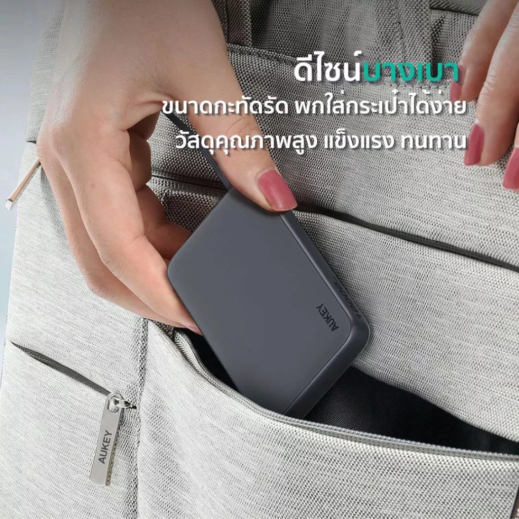 พาวเวอร์แบงค์รุ่นใหม่ 10000 mAh มีสายชาร์จ USB-C ในตัว รองรับการชาร์จ 15W ชาร์จอุปกรณ์ได้ถึง 3 เครื่องในเวลาเดียวกัน ด้วยขนาดที่บางและน้ำหนักเบา จึงเป็นตัวเลือกที่สมบูรณ์แบบสำหรับทุกการเดินทาง เพียงใส่กระเป๋า คุณก็พร้อมใช้งานทุกที่ทุกเวลา