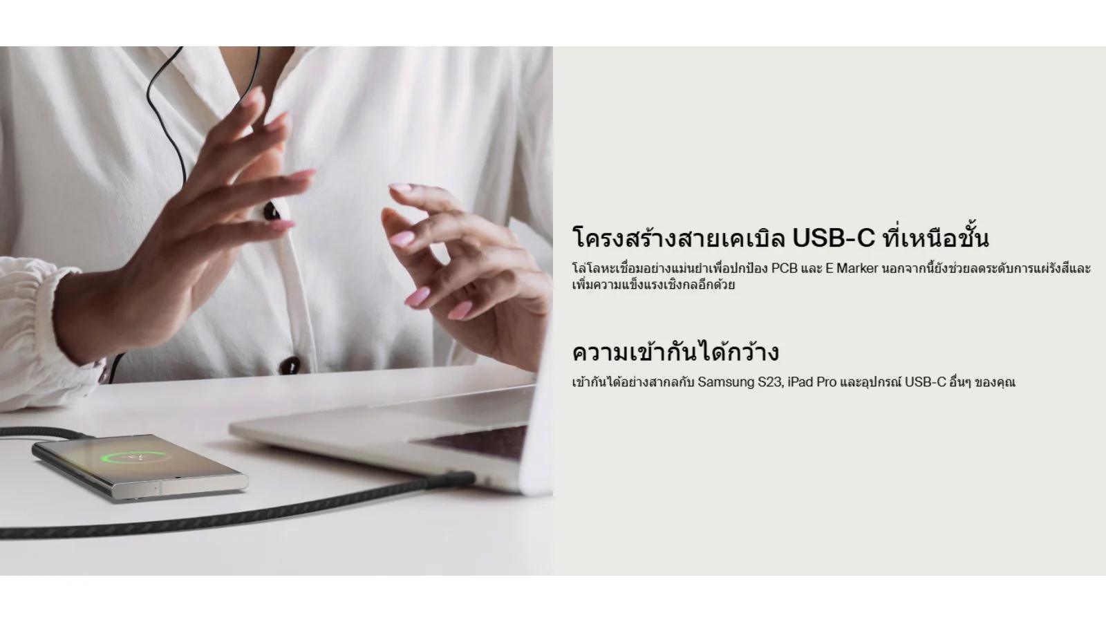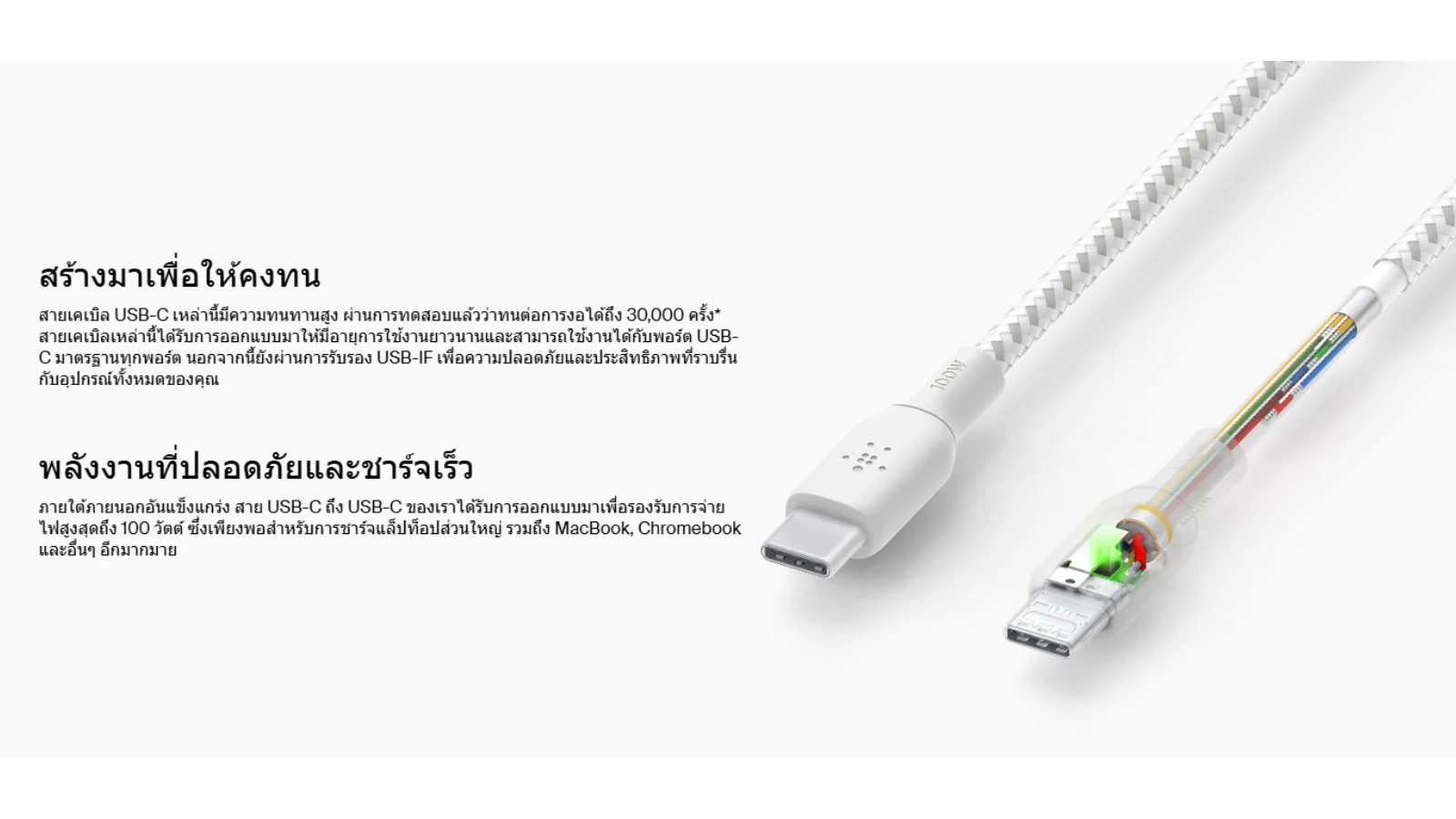 สายชาร์จ Belkin USB-C to USB-C สายที่โค้งงอได้มากที่สุด และความทนทานมาสู่การชาร์จ ให้ประสิทธิภาพสูงสุดในสายชาร์จที่ไม่พันกัน หรือหลุดลุ่ย สาย USB-C to USB-C ที่ออกแบบทางวิศวกรรมด้วยเทคโนโลยีซิลิโคน ให้สัมผัสที่นุ่มนวลและยืดหยุ่น ขณะที่ยังคงทนทานกว่าสายทั่วไป