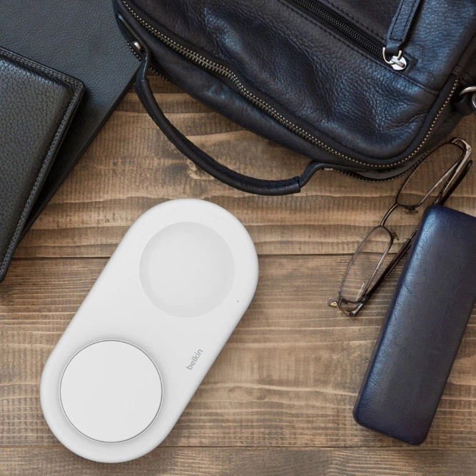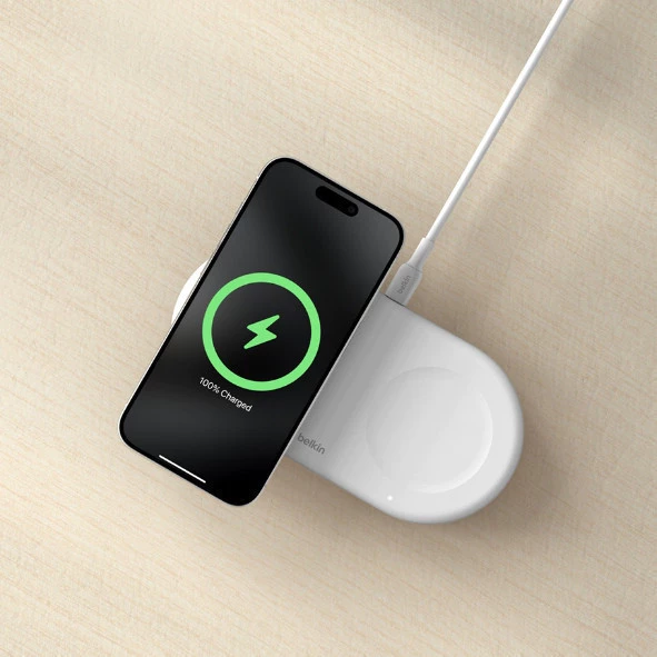 BoostCharge Pro 2-in-1 Wireless Charging Pad with MagSafe 15W (WIZ019bt) แท่นชาร์จ MagSafe ดีไซน์แนวราบแบบ 2 in 1 จาก Belkin แบรนด์ผู้ผลิตอุปกรณ์เสริมชั้นนำจากสหรัฐอเมริกา (USA)