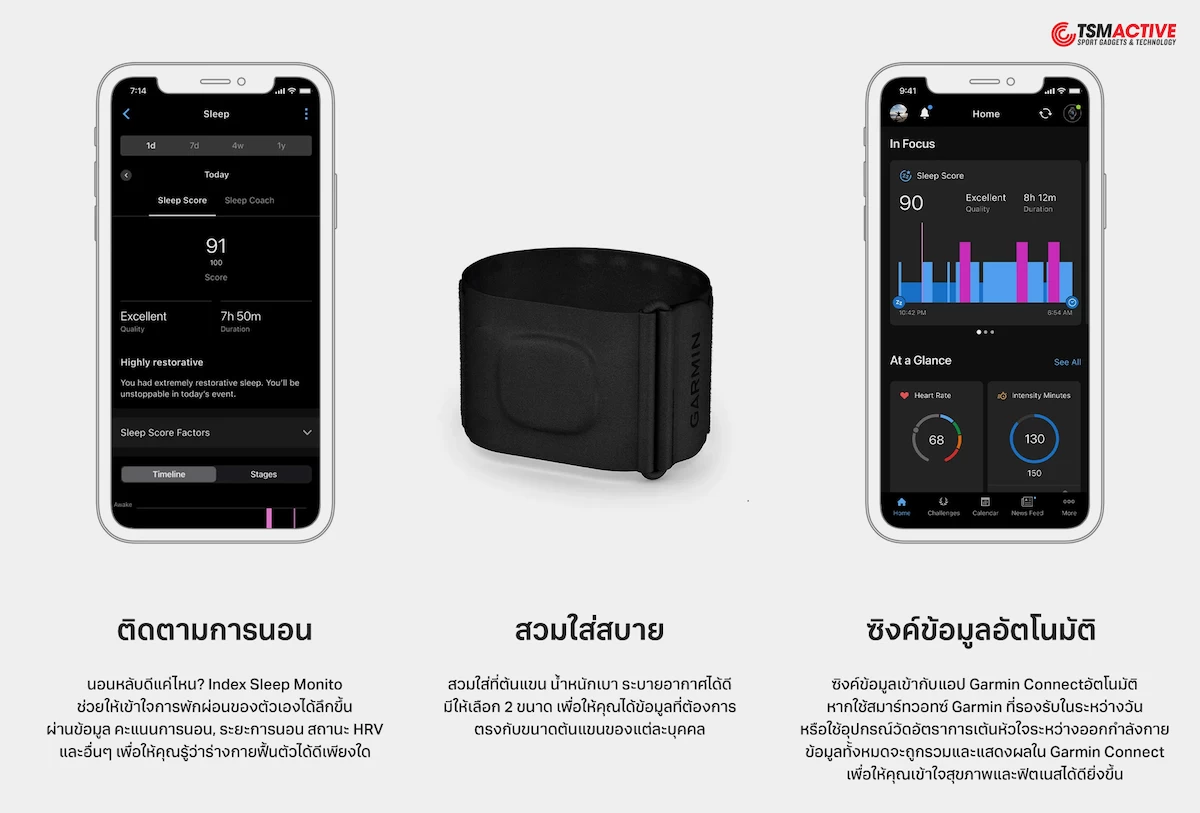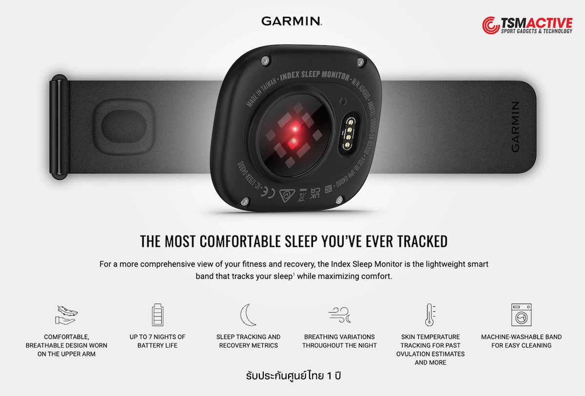 Garmin Index Sleep Monitor สายรัดข้อมือสำหรับการนอนหลับสวมใส่บริเวณต้นแขน